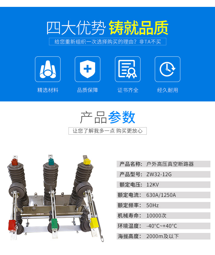 ZW32-12系列戶外交流高壓真空斷路器(以下簡稱“斷路器”)系三相交流50Hz戶外高壓開關設備,主要用于農網和城網的10kV戶外配電系統,作為分、合負荷電流、過載電流及短路電流之用;也可用于其它類似場所。ZW32-12系列戶外交流高壓真空斷路器符合國家GB 1984《交流高壓斷路器》和國際電工委員會IEC 60056《高壓交流斷路器》等標準。